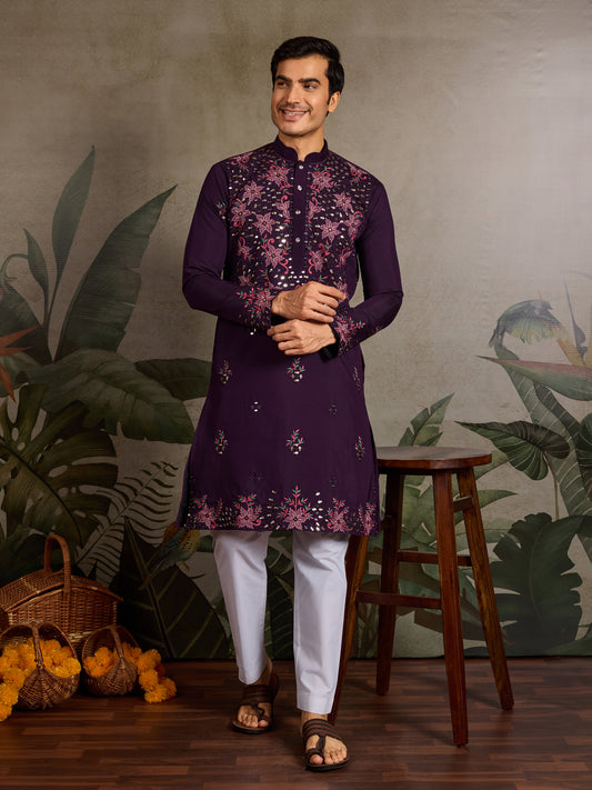 Royal Purple Embroidered Kurta for Men | Festive & Ethnic Wear