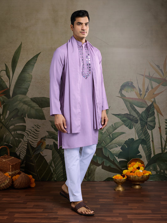 Men's Embroidered Light Purple Kurta Set with Dupatta