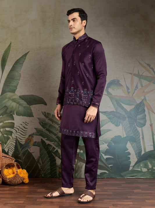 Majestic Plum Embroidered Kurta Set for Men