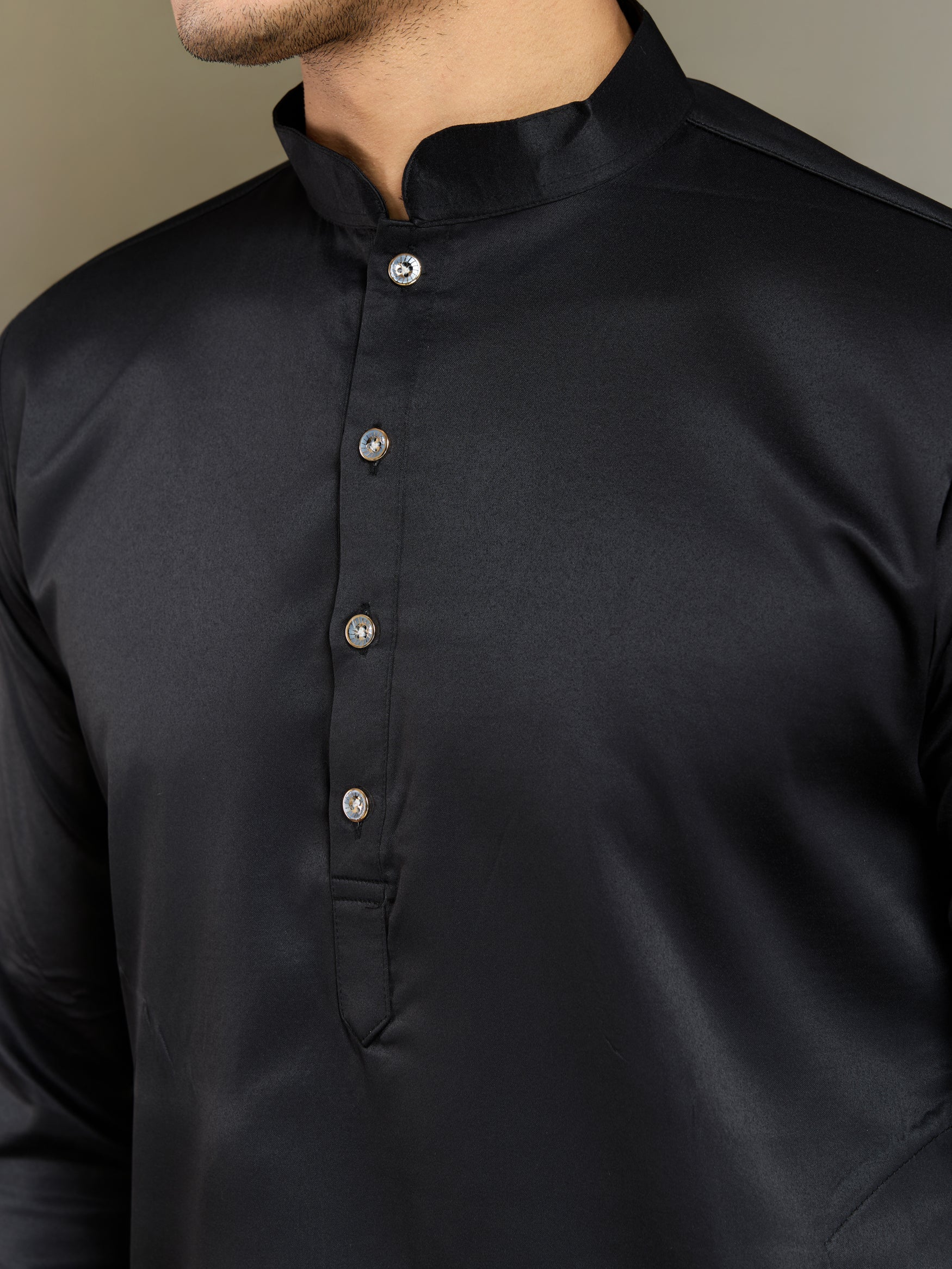 Step into sophistication with this black embroidered designer kurta, crafted for modern men who love timeless ethnic style. The kurta features intricate thread embroidery and delicate beadwork, highlighted with a subtle sheen for a regal appeal. The embroidered mandarin collar and embellished front add a touch of luxury, making it an excellent choice for weddings, receptions, festive occasions, and evening events.