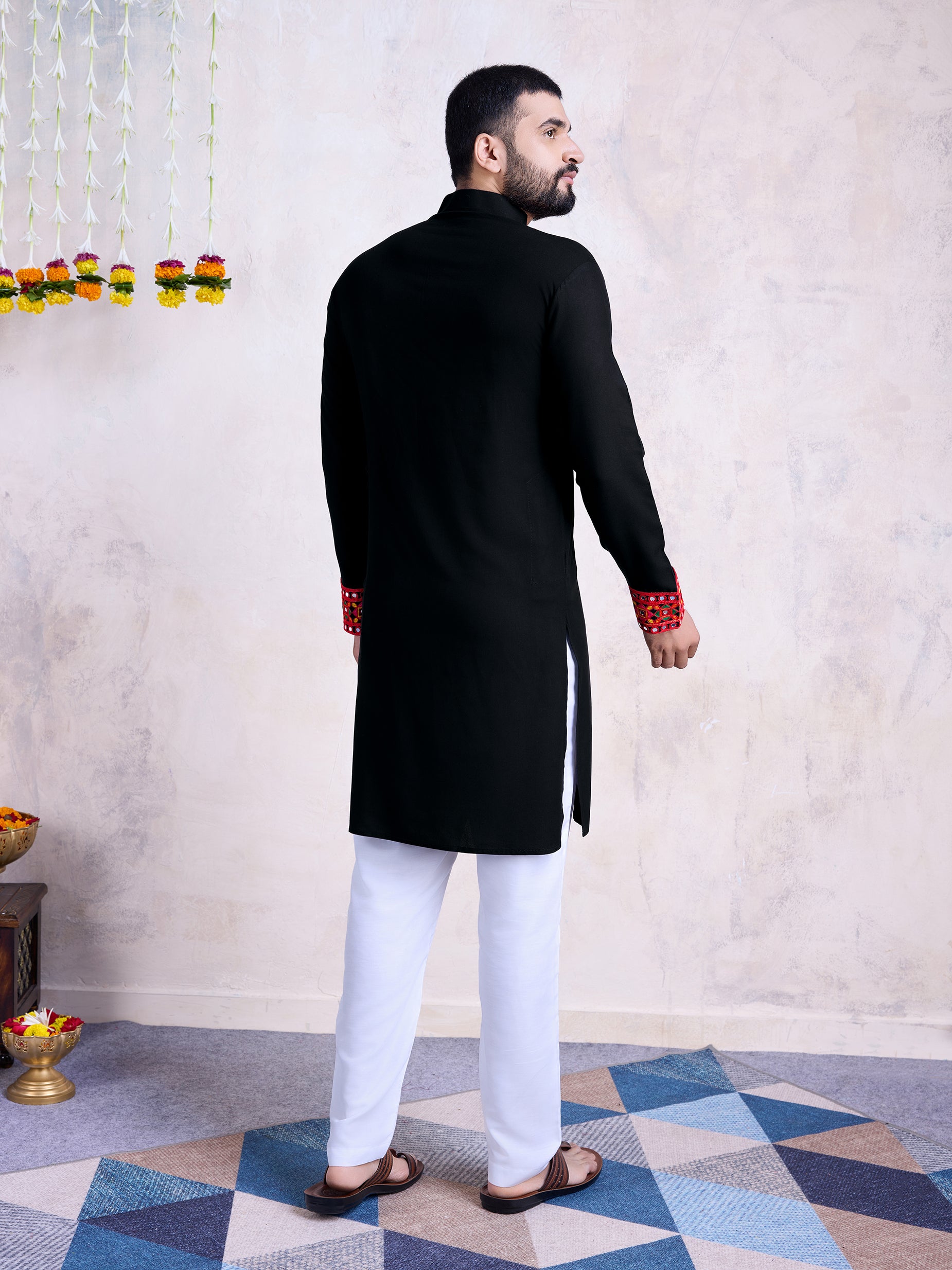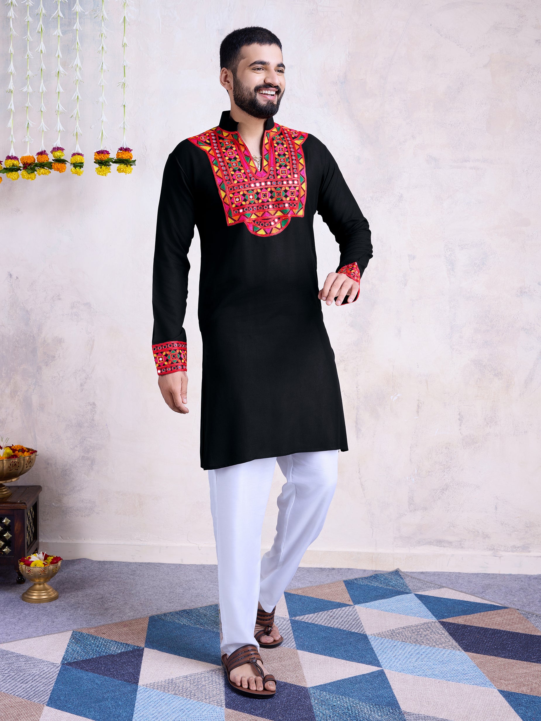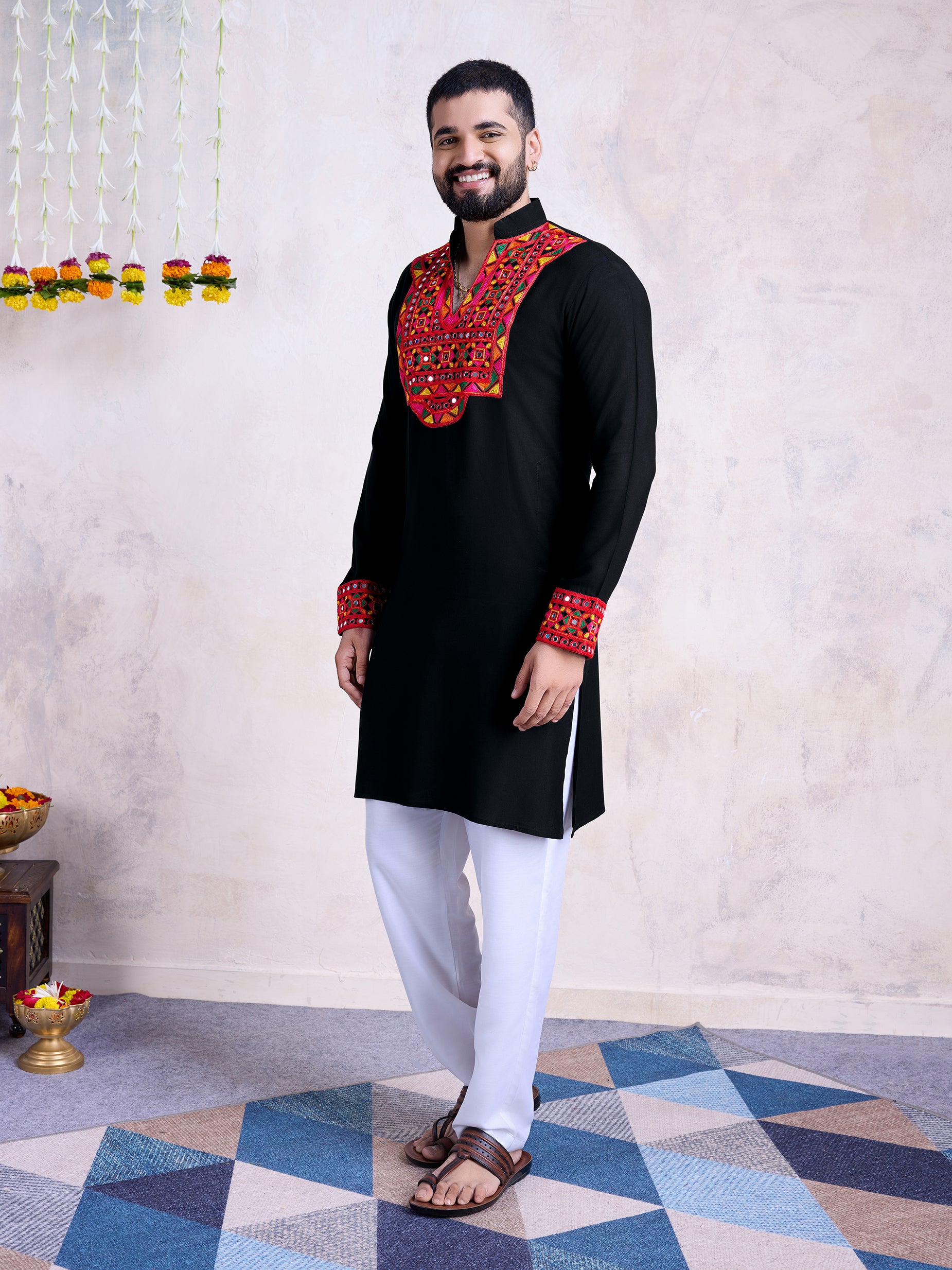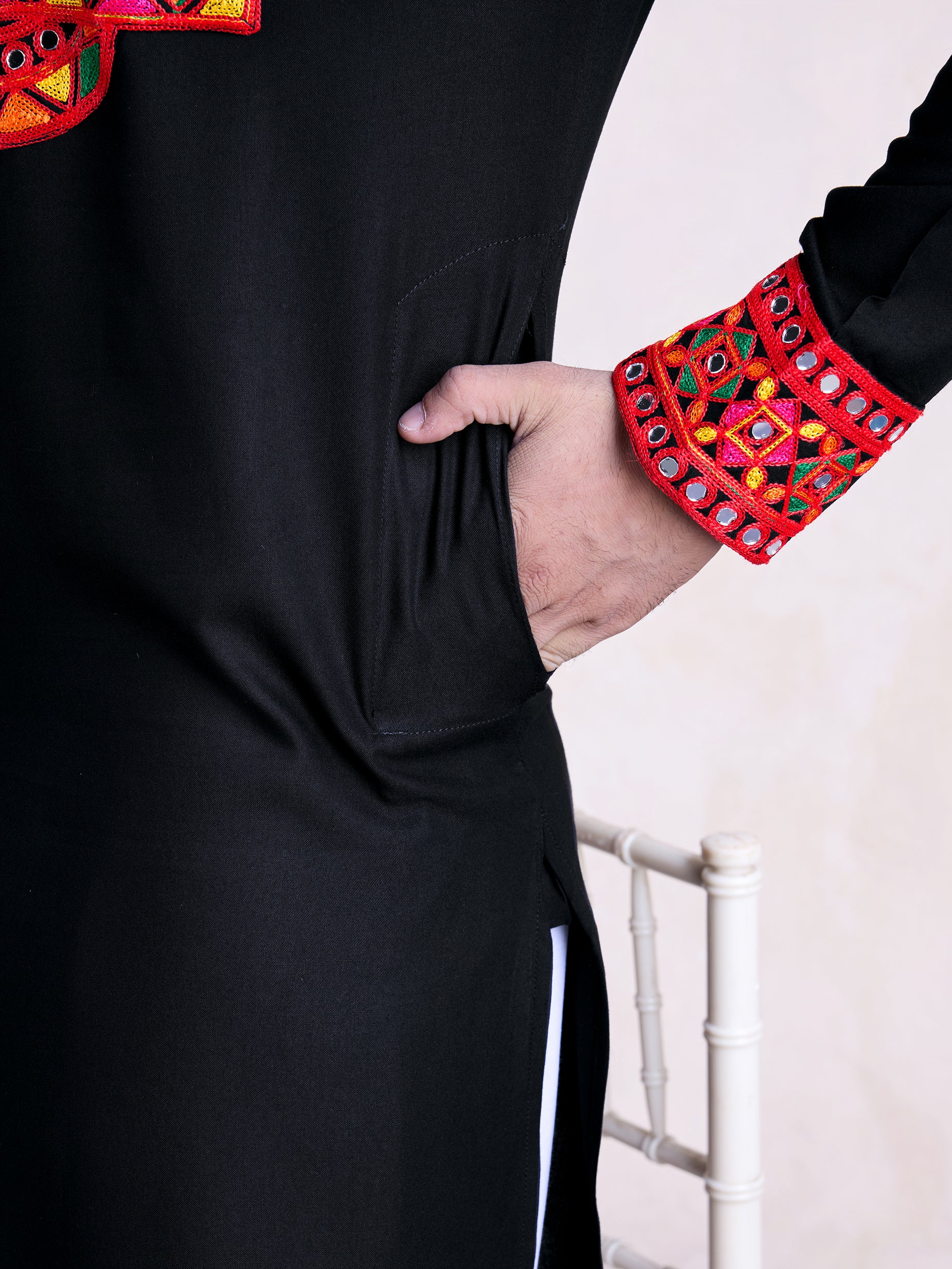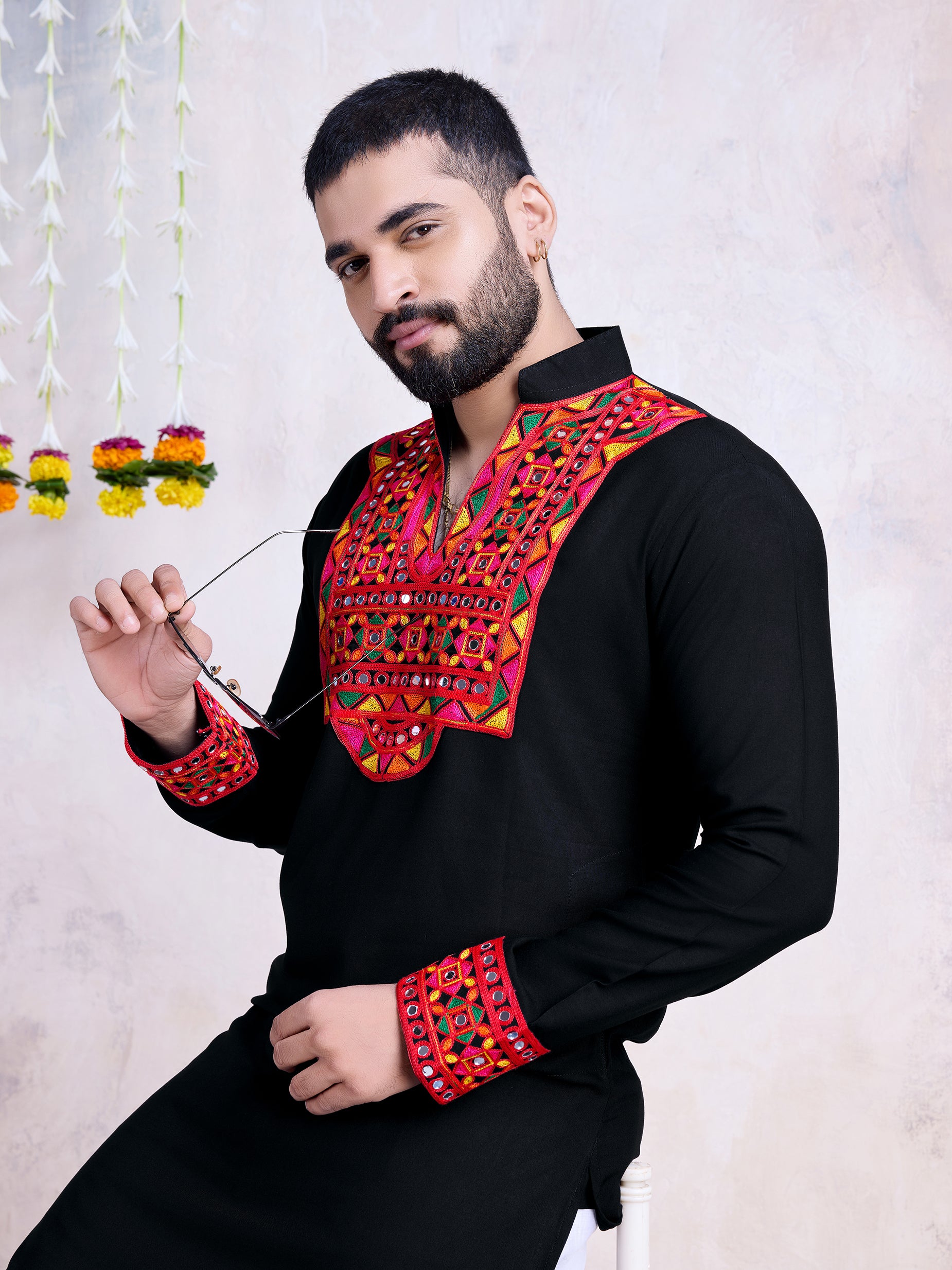 Black Kurta with Multicolor Mirror & Thread Embroidery