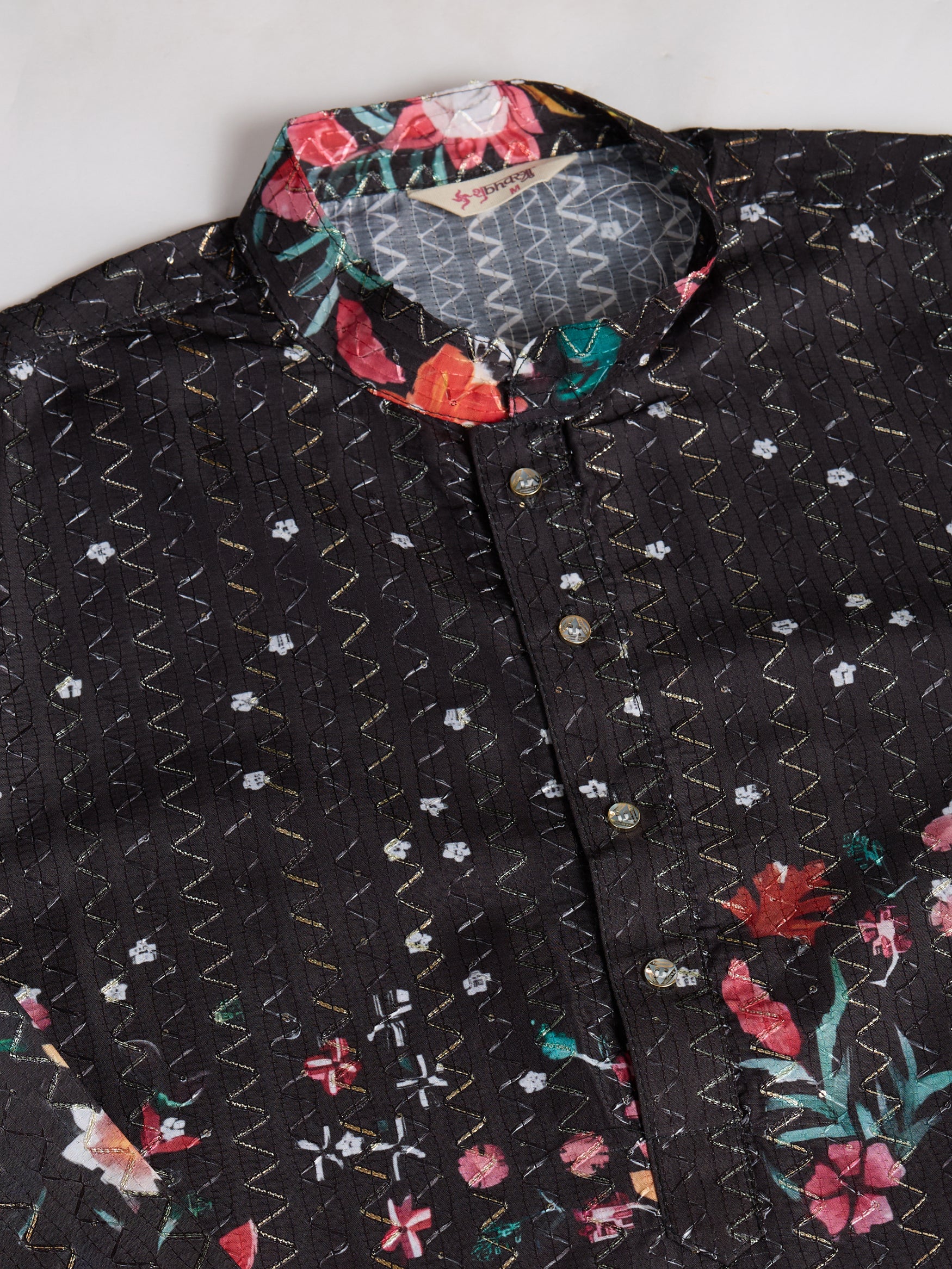 Crafted from breathable and comfortable fabric, the kurta offers a sharp silhouette with its mandarin collar and button placket. Perfect for festivals, theme parties, cultural events, and casual celebrations, it pairs effortlessly with black or white trousers for a striking ethnic look.