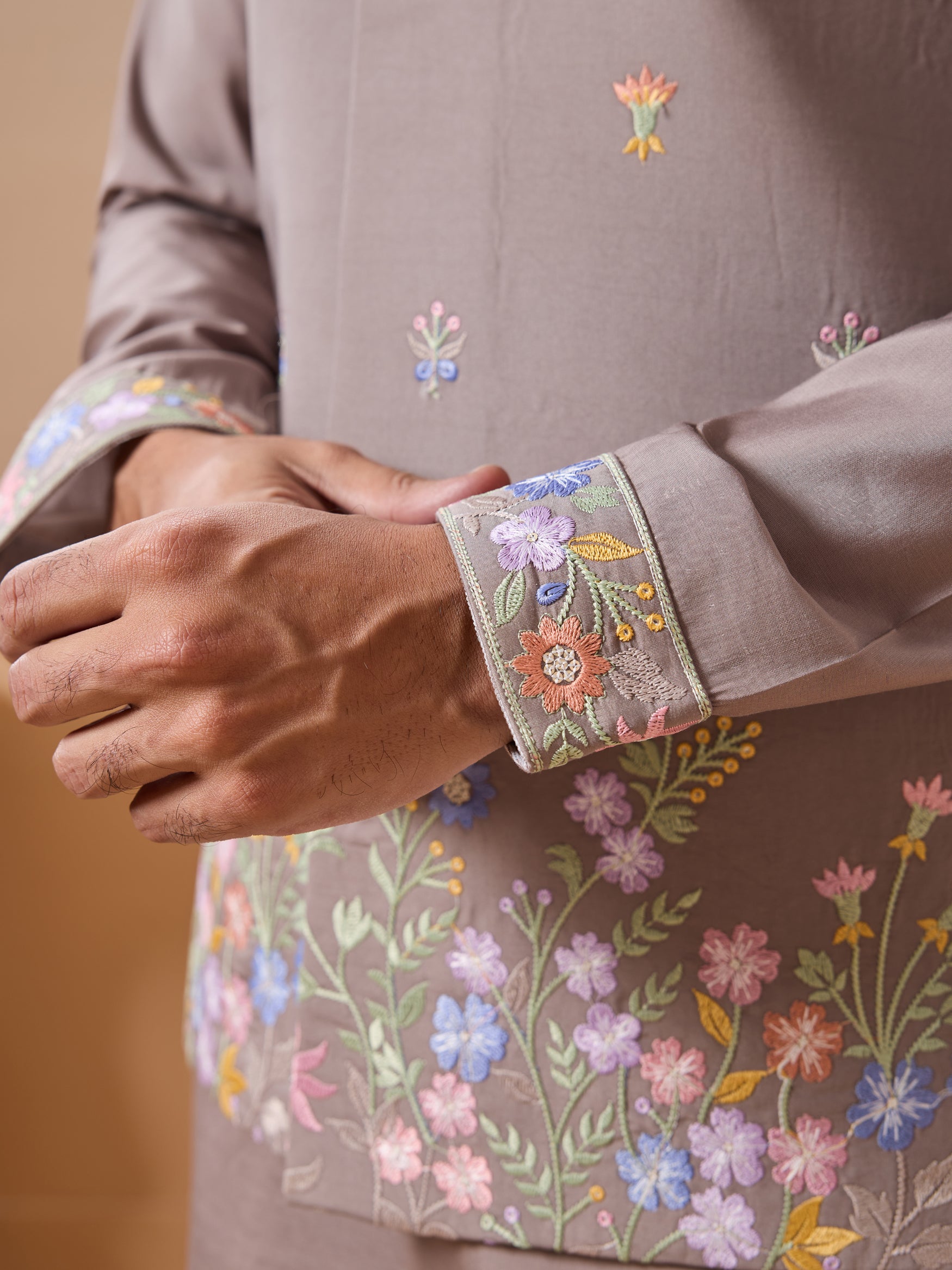 Elegant Taupe Floral Embroidered Kurta Set for Men