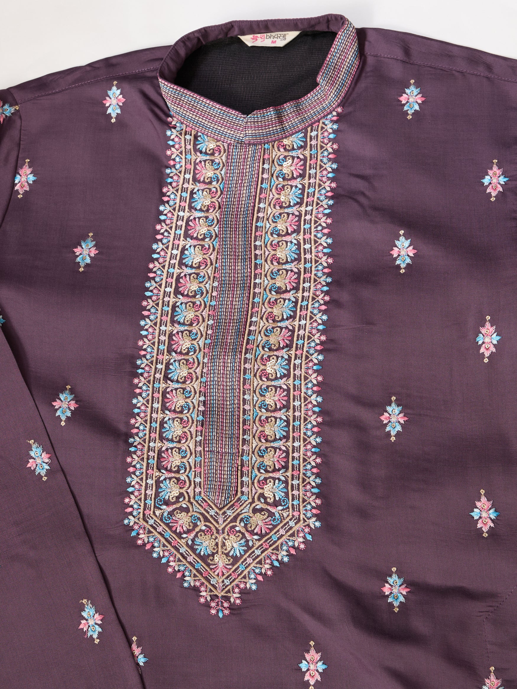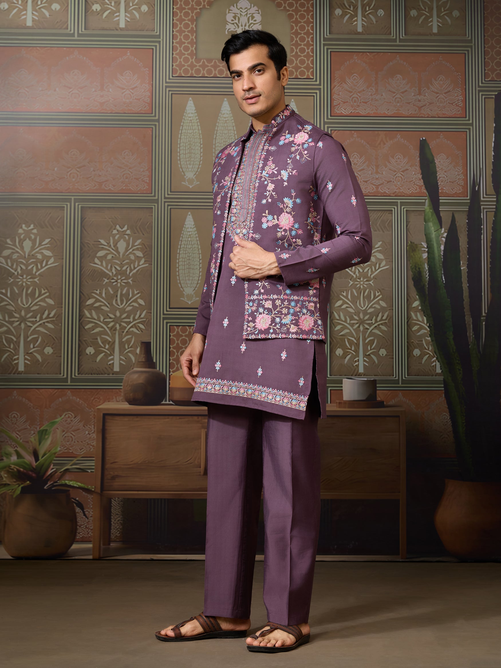 Elevate your style with this stunning purple kurta set, featuring intricate floral embroidery that blends tradition with modern flair. Perfect for weddings, festivals, or any special occasion, this design offers comfort, sophistication, and a timeless appeal. Stand out and make a statement with every step!