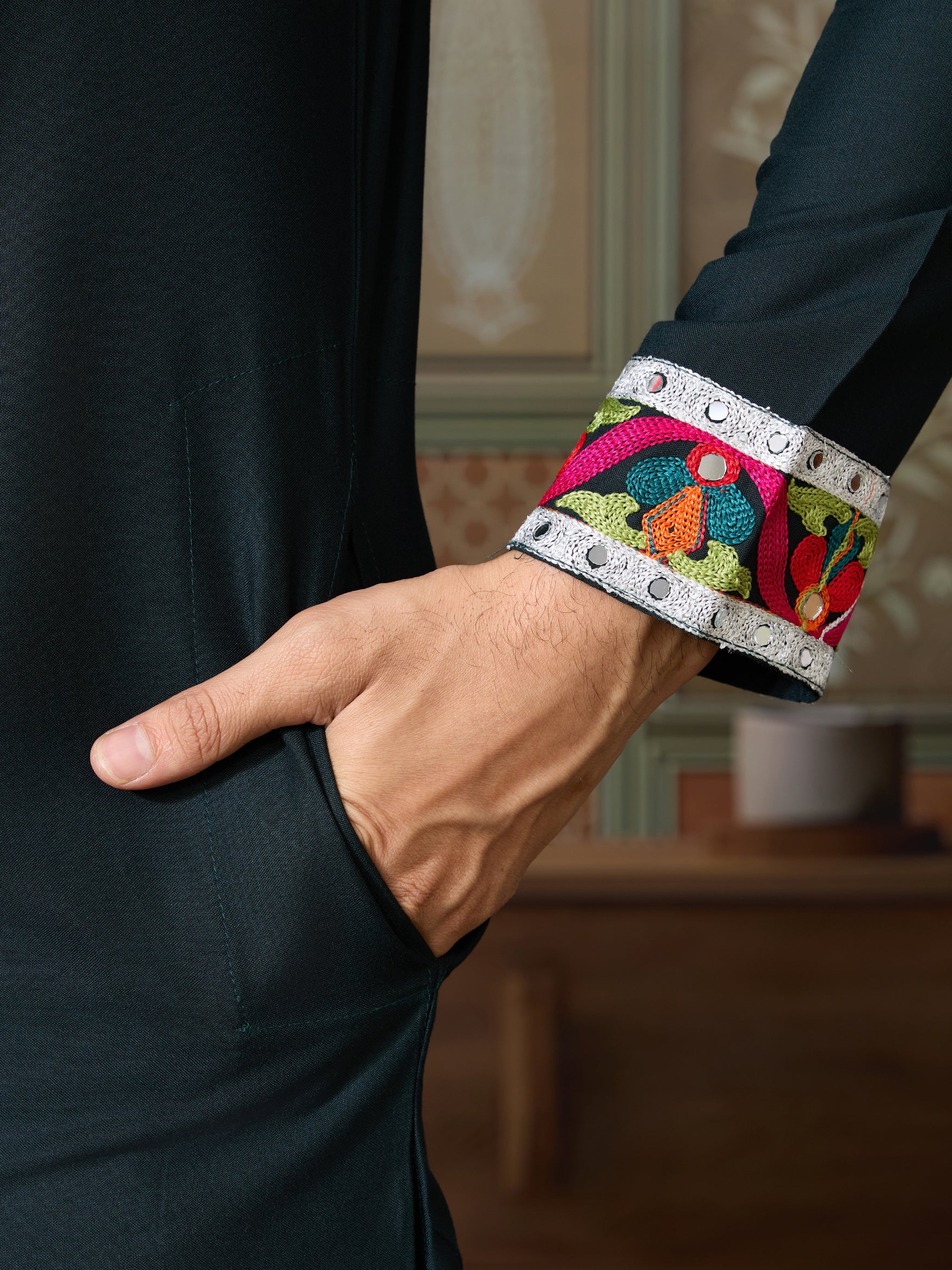 Green Pure Cotton Kurta with Multi Thread & Mirror Work