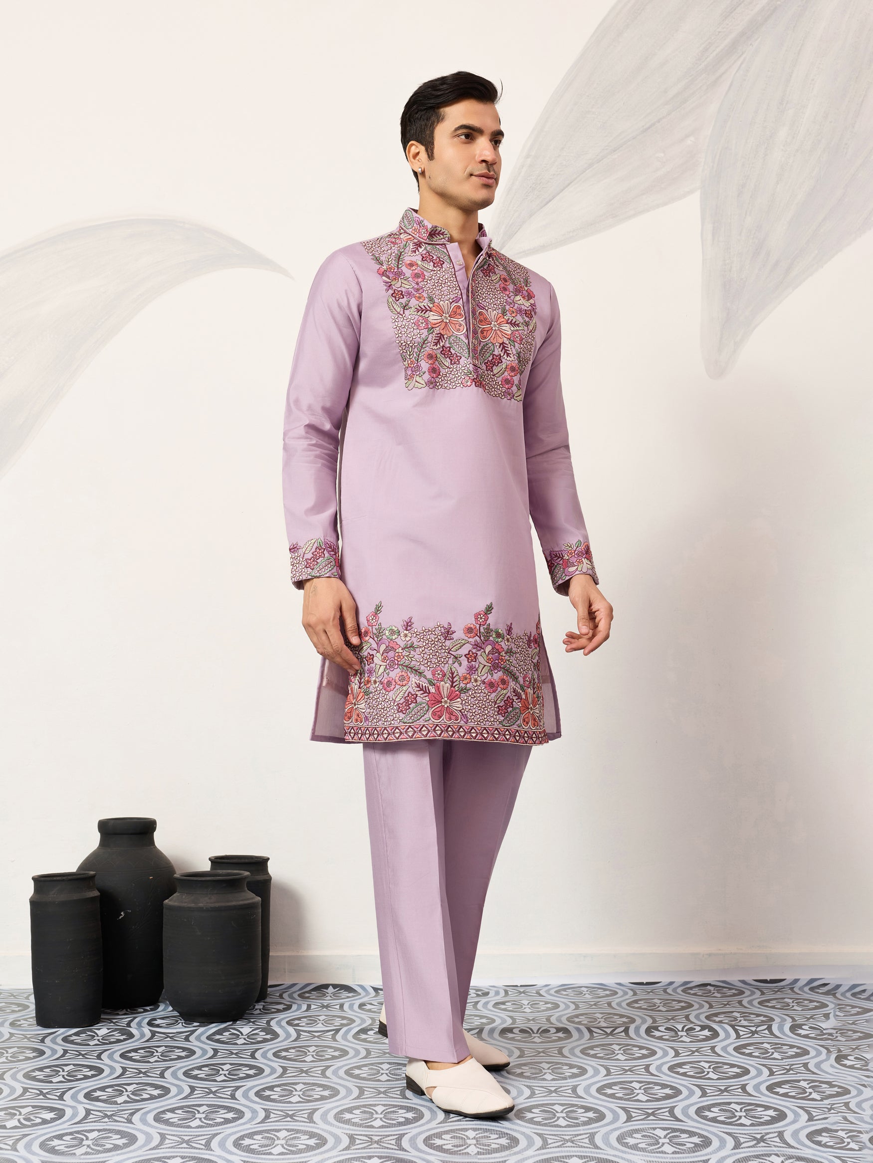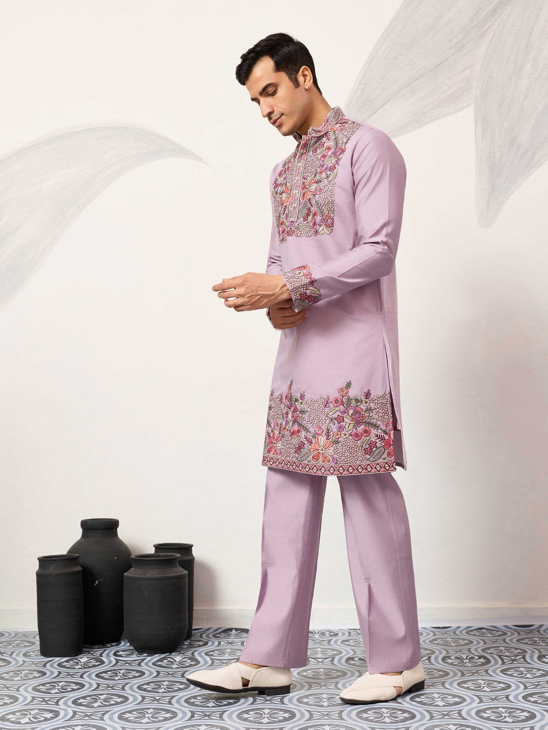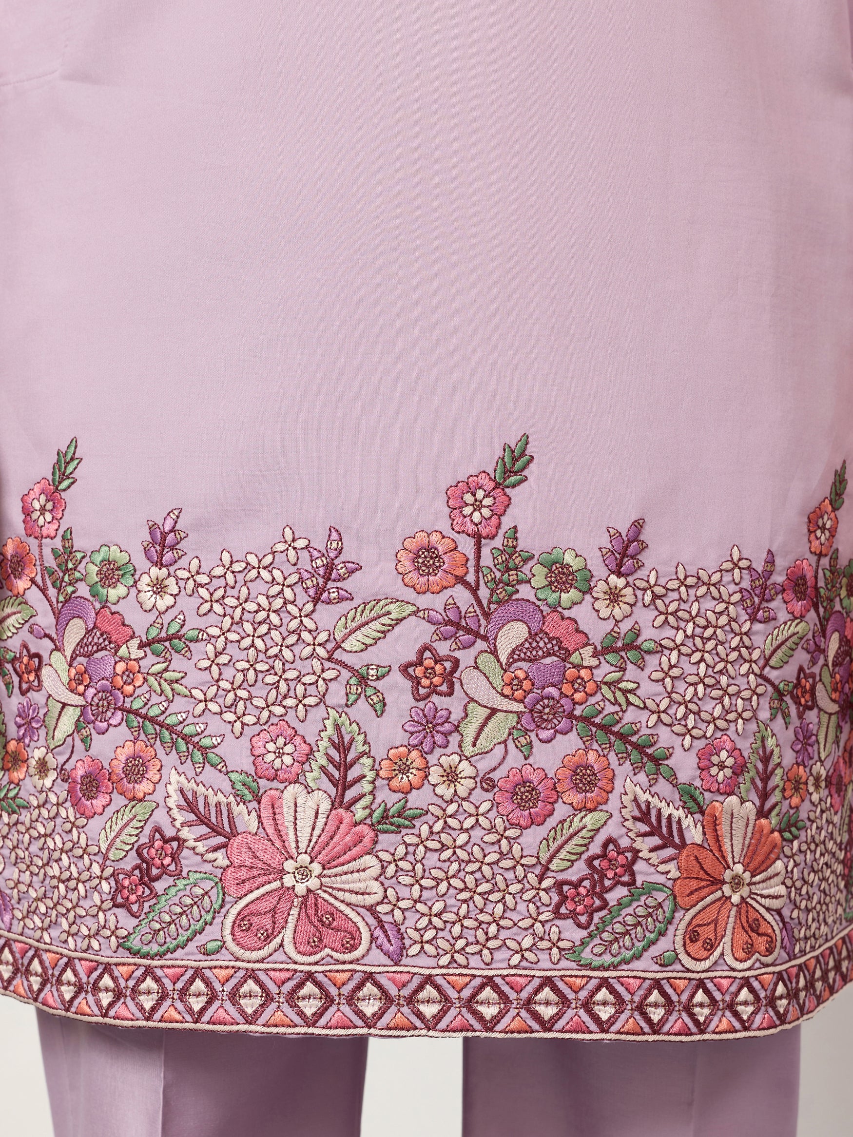 Elevate your ethnic wardrobe with the refined elegance of the Beige Blossom Heritage Embroidered Kurta Set. Crafted in a soft and sophisticated beige tone, this kurta is beautifully adorned with intricate multicolor floral embroidery across the yoke, inspired by traditional artistry and timeless design.