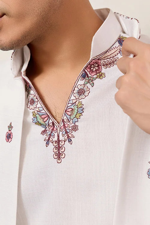 Men’s Ivory White Embroidered Kurta Set with Designer Jacket