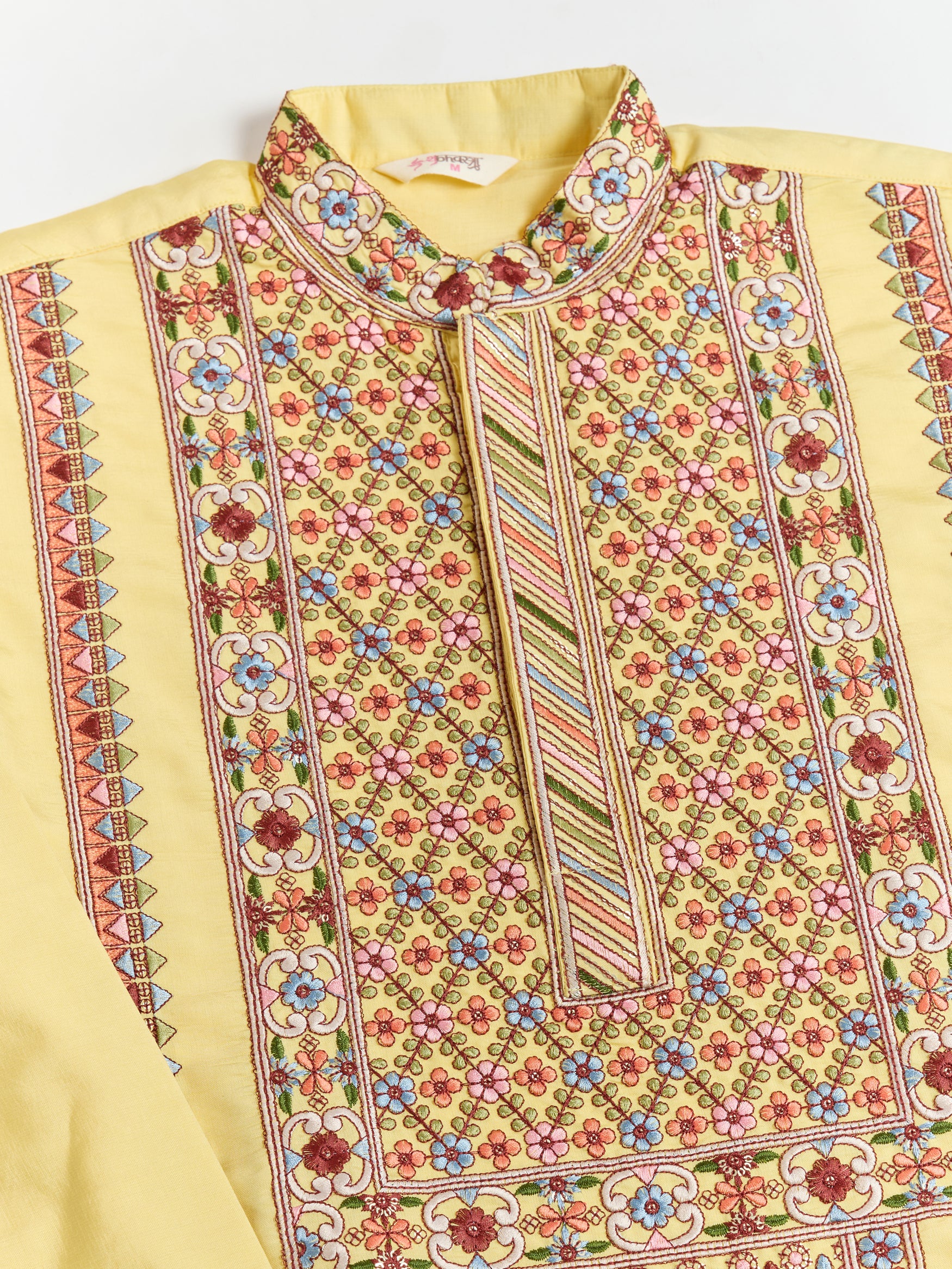 Men’s Yellow Embroidered Cotton Kurta – Festive & Ethnic Wear