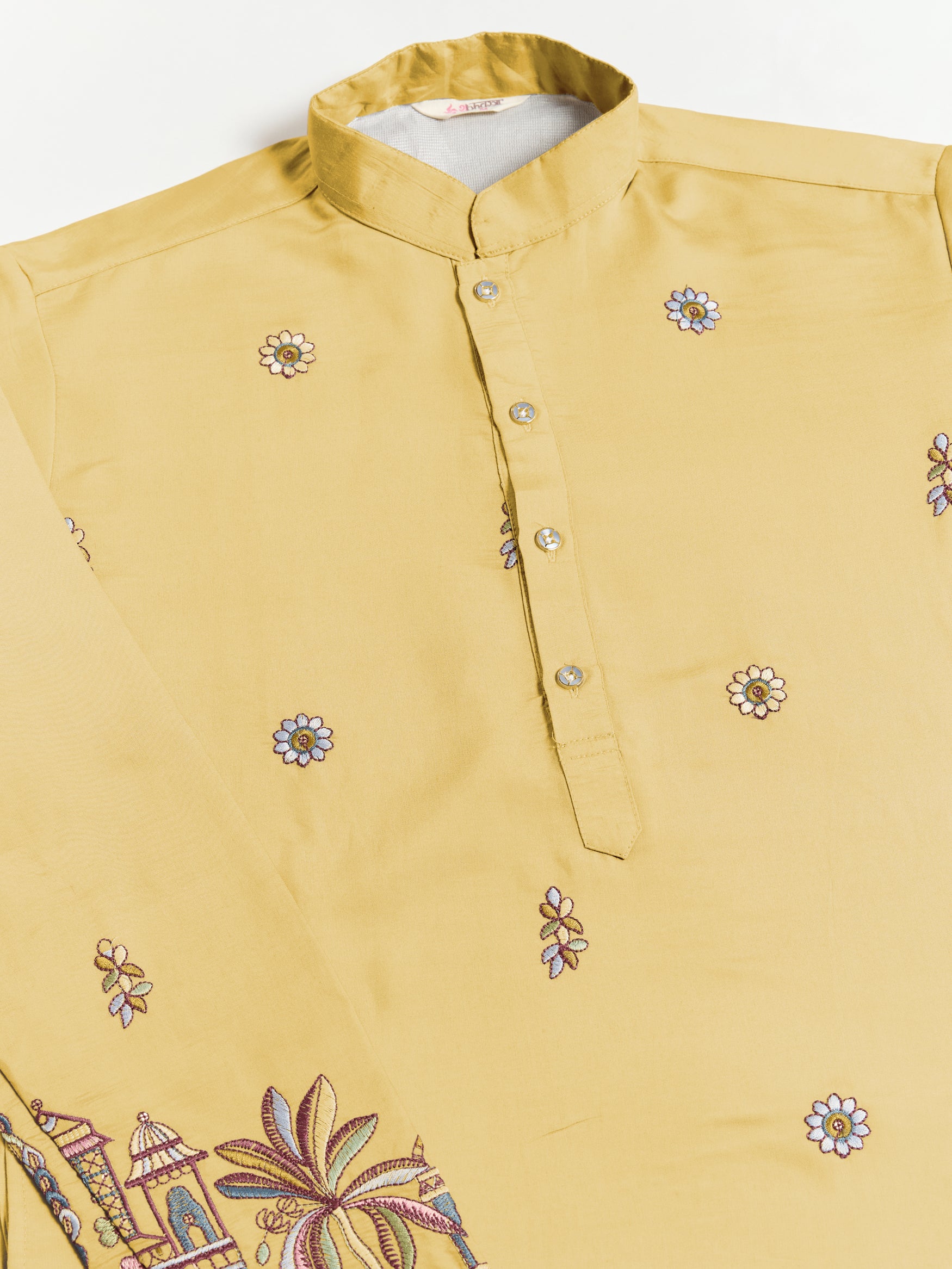 Mustard Yellow Embroidered Kurta Set with Dupatta
