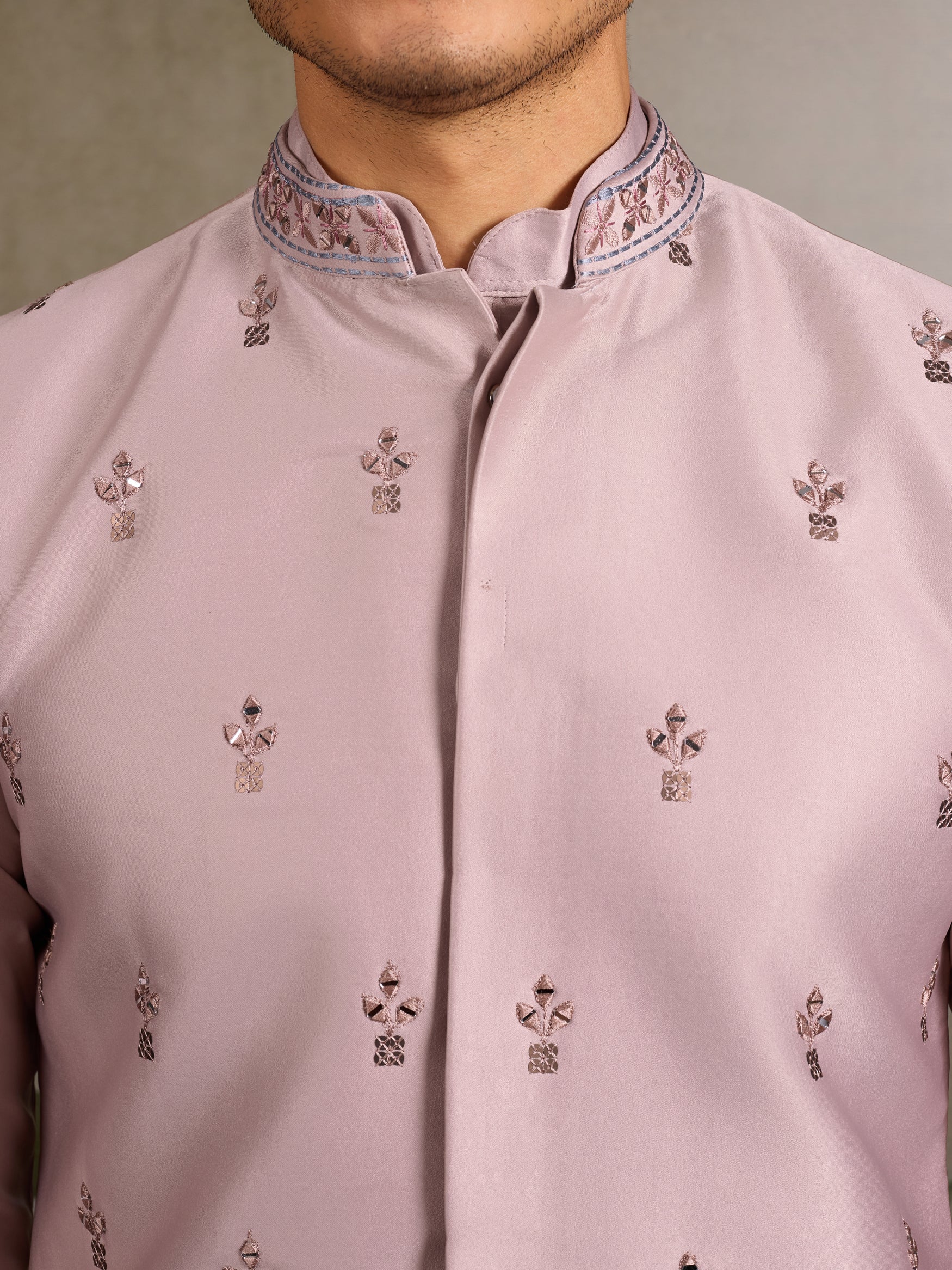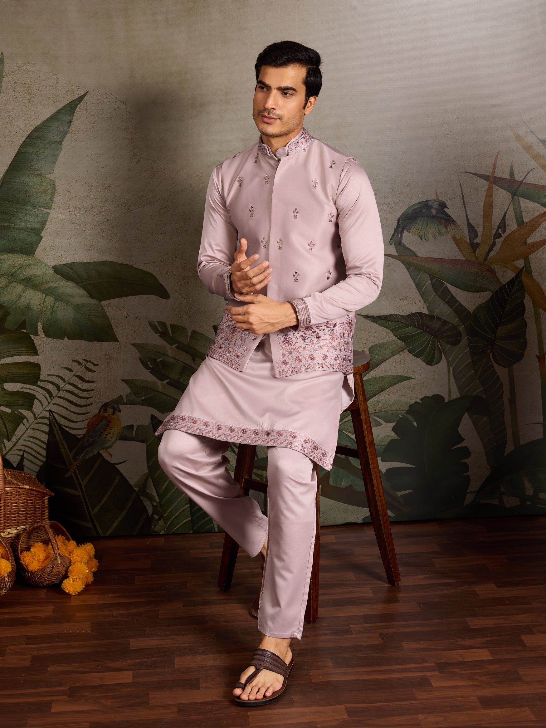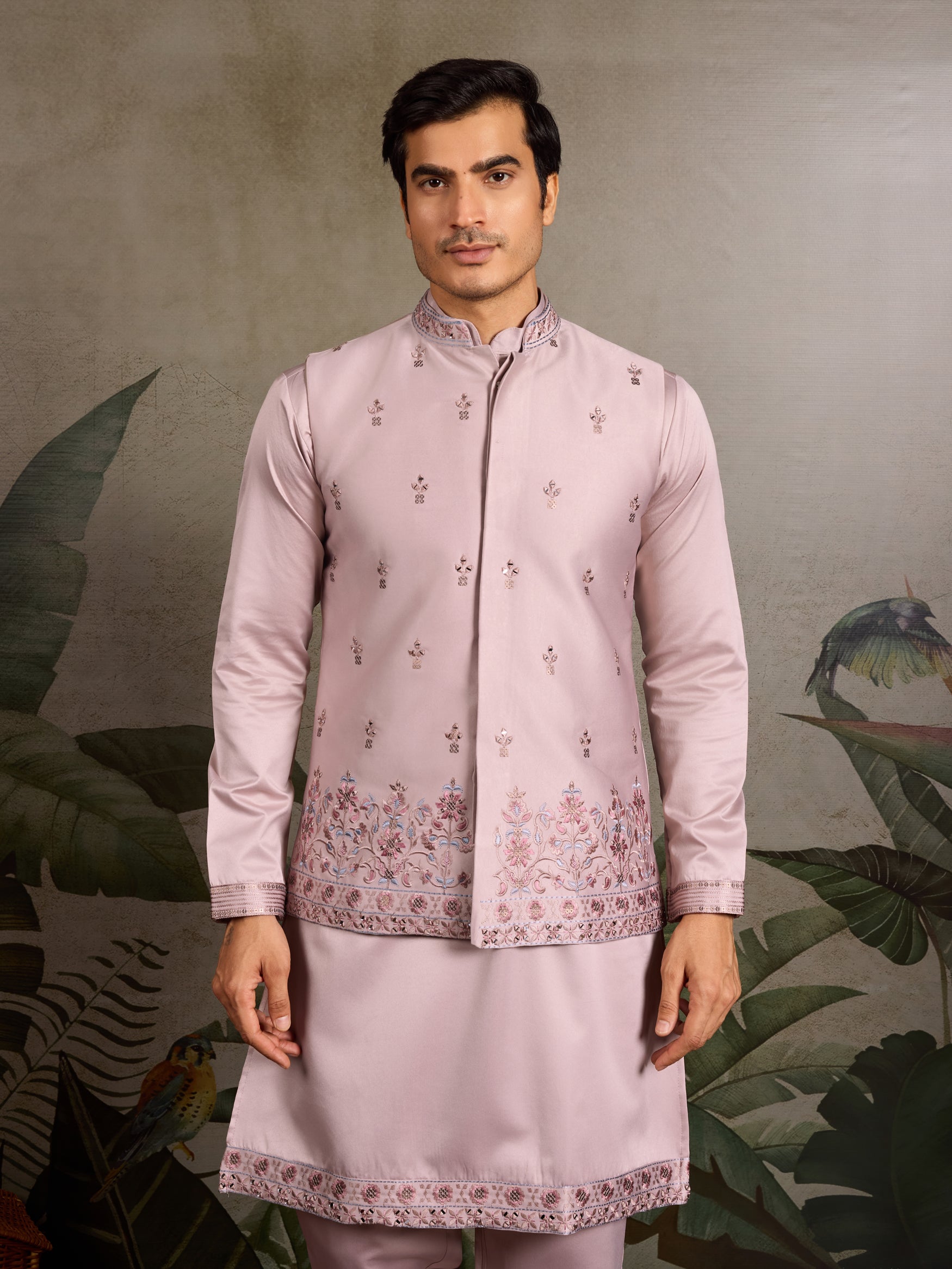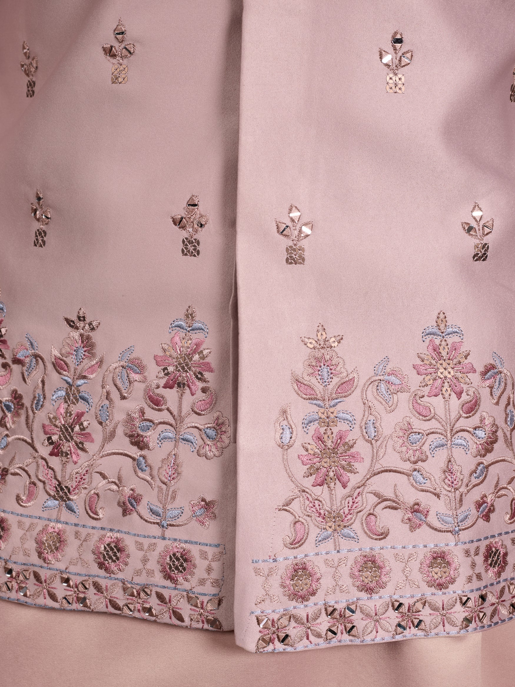 Bring elegance and charm to your ethnic wardrobe with this pastel pink embroidered kurta, designed for weddings, festive events, and cultural celebrations. The kurta features delicate floral embroidery in pastel shades of pink, blue, and gold, beautifully placed along the front panel, hemline, and cuffs. The mandarin collar with intricate embellishments adds a regal touch, while the soft premium fabric ensures comfort and sophistication.
