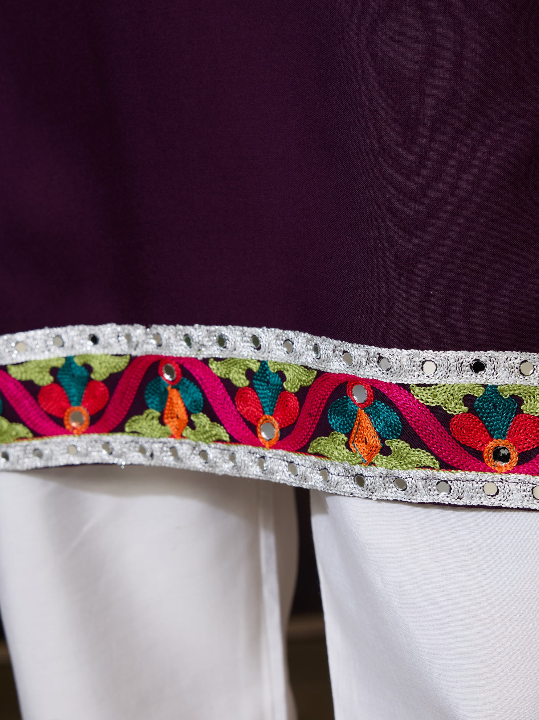 Pure Cotton Purple Kurta with Multi-Thread and Real Mirror Work