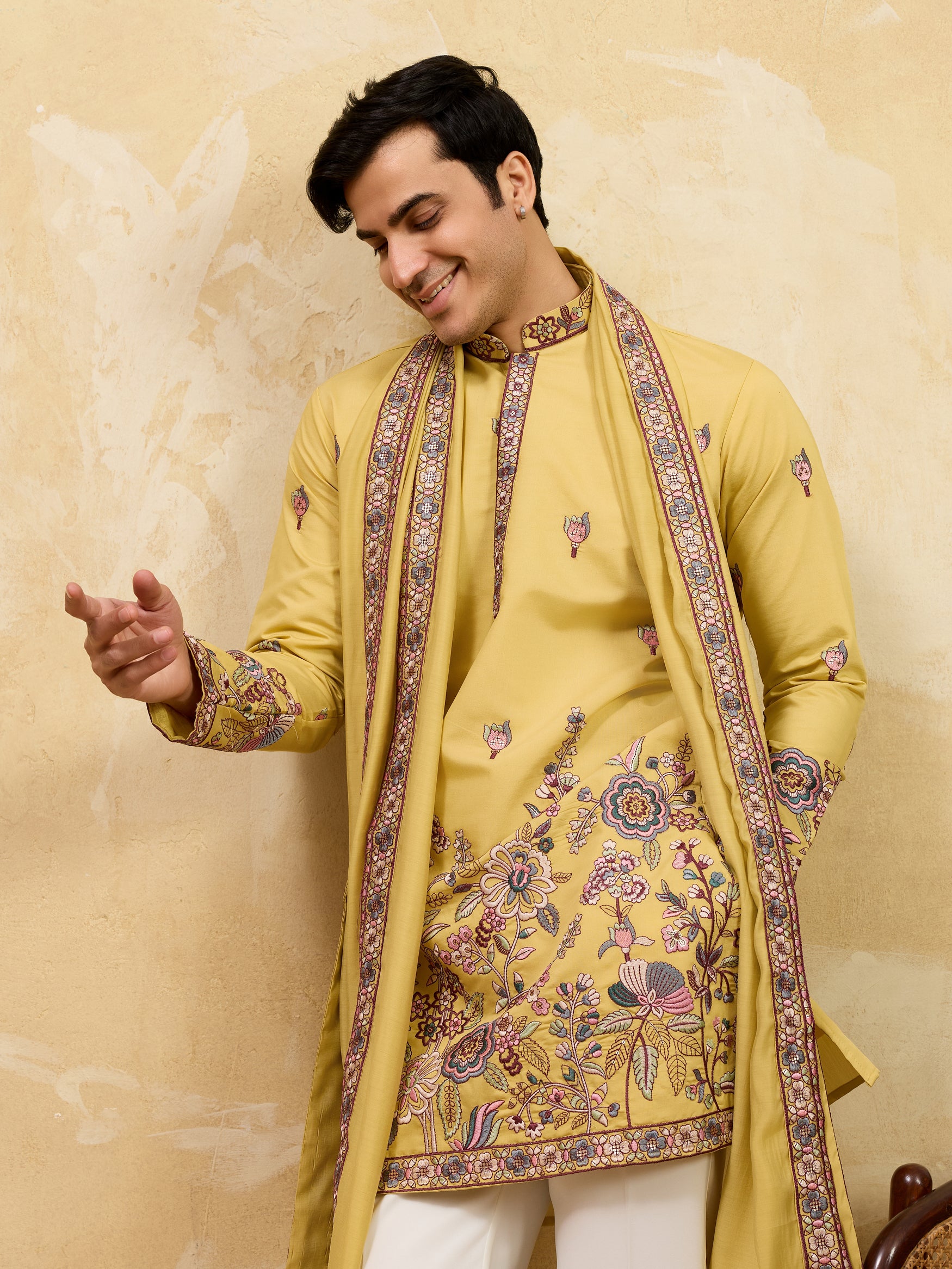 Sunlit Regal Mustard Embroidered Kurta Set with Heritage Dupatta