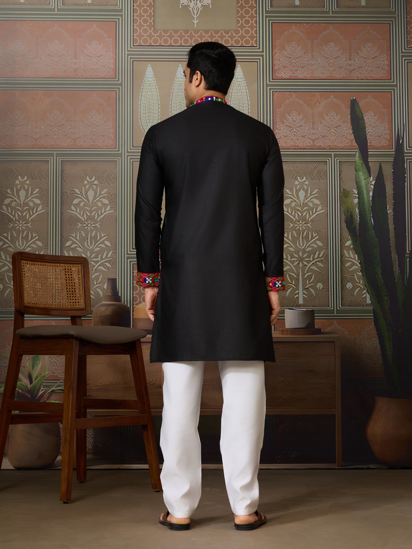 Title : Black Embroidered Gujarati Mirror Work Kurta for Men